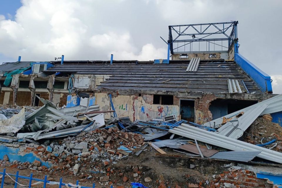 Po starym stadionie praktycznie nie ma już śladu. Co ze świecącą eRką z dachu dawnej trybuny?