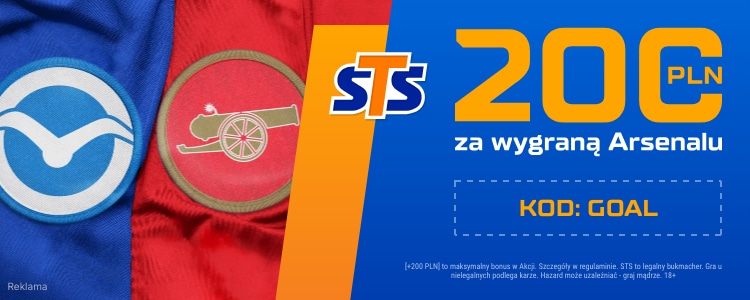 Jeden z bukmacherów na 32. kolejkę Premier League przygotował specjalną ofertę. Po rejestracji w STS z kodem promocyjnym GOAL, będziesz miał możliwość zgarnięcia bonusu 200 zł za obstawienia drużyny, która odniesie zwycięstwo. Wystarczy spełnić kilka prostych kroków.
