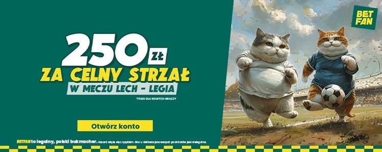 Promocja dotyczy nowych użytkowników, a zatem zarejestruj konto z kodem promocyjnym GOAL i odbierz bonus 250 złotych za celny strzał w hicie Ekstraklasy. Na naszej stronie sprawdzisz także typy i analizy na pojedynek Lecha Poznań z Legią Warszawa.