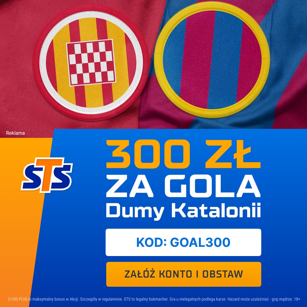 W ofercie STS pojawiła się specjalna promocja związana z pojedynkami Real Sociedad – Real Madryt oraz Girona – FC Barcelona. Bukmacher daje 300 zł bonusu za przynajmniej jednego gola podopiecznych Carlo Ancelottiego czy też bramkę Roberta Lewandowskiego i spółki. Aby skorzystać z tej promocji, trzeba zarejestrować konto w STS z kodem promocyjnym GOAL300, a także postępować wedle dedykowanego regulaminu. Poniżej jego najważniejsze zapisy.