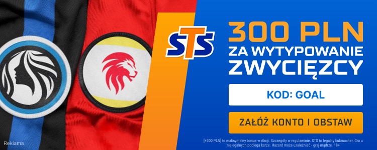 Bonus 300 zł za wygraną Bayeru lub Atalanty będą mogli zgarnąć tylko nowi klienci STS, którzy zarejestrują się z kodem GOAL. Według regulaminu, aby otrzymać środki bonusowe na saldo główne, należy dokonać dwukrotnego obrotu.