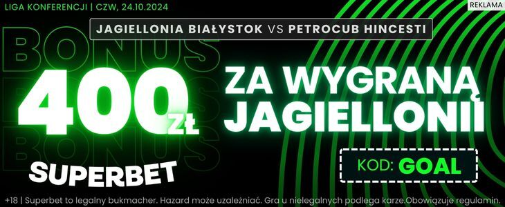 - Superbet oferuje 400 zł bonusu za wygraną białostocczan nad Petrocub Hincesti