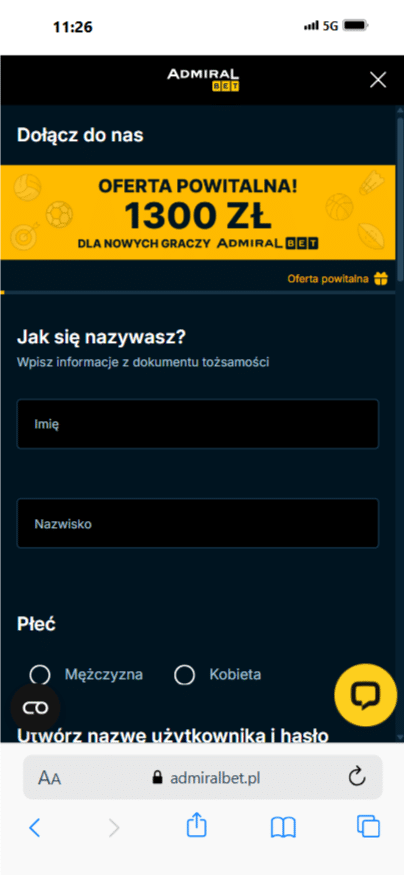 Rejestracja w AdmiralBet jest prosta i wymaga kilku kroków. Oto, co należy zrobić, żeby założyć konto u tego bukmachera: