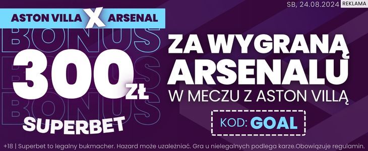 - Superbet oferuje 300 zł bonusu za wygraną Kanonierów w tym pojedynku