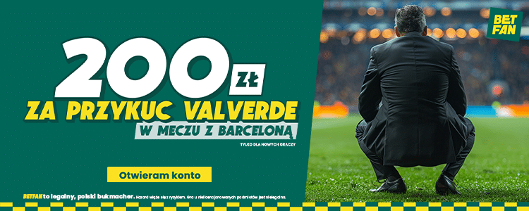 - Bukmacher Betfan przygotował specjalną promocję, w której za „przykuc” Ernesto Valverde można zgarnąć freebet 200 zł