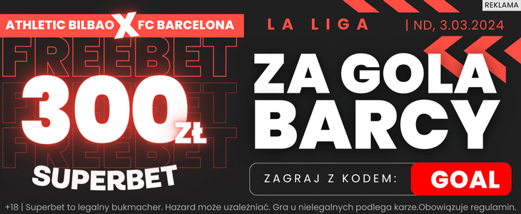 Freebet 300 zł za gola Barcelony z Athletikiem Bilbao