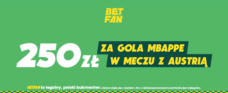 - Betfan oferuje bonus 250 zł za gola Kyliana Mbappe