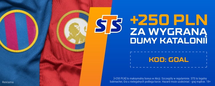 W tym miejscu warto poinformować o specjalnej promocji bukmachera STS. Podając podczas rejestracji w STS kod promocyjny GOAL, można zdobyć bonus 250 zł za zwycięstwo FC Barcelony z Osasuną.