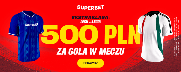 - Superbet oferuje 500 złotych bonusu za poprawny typ na gola Lecha lub Legii!