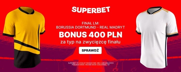 Jeżeli rozważasz postawienie na triumf Borussii lub Realu w sobotnim finale, to powinieneś sprawdzić ofertę Superbet. Zakładając konto z kodem promocyjnym GOAL będziesz mógł postawić zakład na zdobycie przez Borussię lub Real trofeum po kursie 200 (przy stawce 2 zł). Jak skorzystać z tej oferty? Wyjaśniamy krok po kroku.