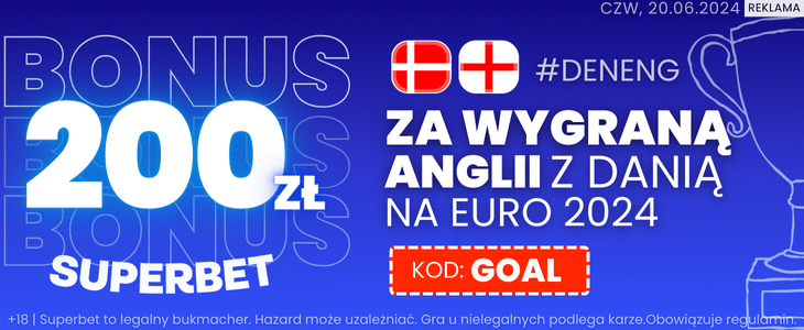 Co ciekawe, rejestracja z kodem GOAL w Superbet pozwala na odblokowanie zakładu bez ryzyka w pierwszym tygodniu gry. Dlatego jeśli Anglia nie wygra z Danią, to bukmacher dokona zwrotu przegranych środków.