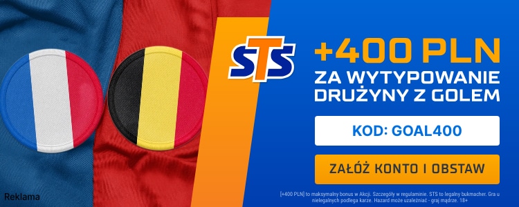 - STS oferuje kurs 200.00 na gola jednego z zespołów w meczu Francja – Belgia