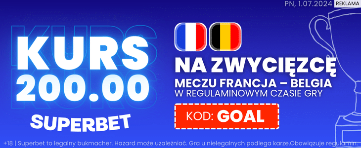 Ofertę uatrakcyjnia fakt, że rejestracja z kodem GOAL w Superbet pozwala na odblokowanie zakładu bez ryzyka w pierwszym tygodniu gry. Dlatego jeśli źle wytypujesz zwycięzcę meczu Francja – Belgia, to bukmacher dokona zwrotu przegranych środków.