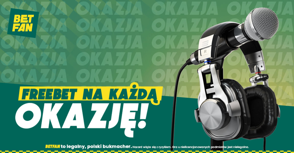 Betfan ofertuje freebet 5 zł za każdym razem, gdy Dariusz Szpakowski w trakcie trwania meczu wypowie słowo „OKAZJA”. Jeżeli zrobi to 10 razy, otrzymasz freebet o wartości 50 zł. Ciekawe prawda? Co trzeba zrobić, aby mieć szansę na zgarnięcie darmowego zakładu.