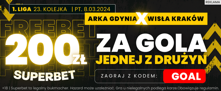 - W Superbet możesz zagrać kupon na gola Arki lub Wisły po kursie 100.00