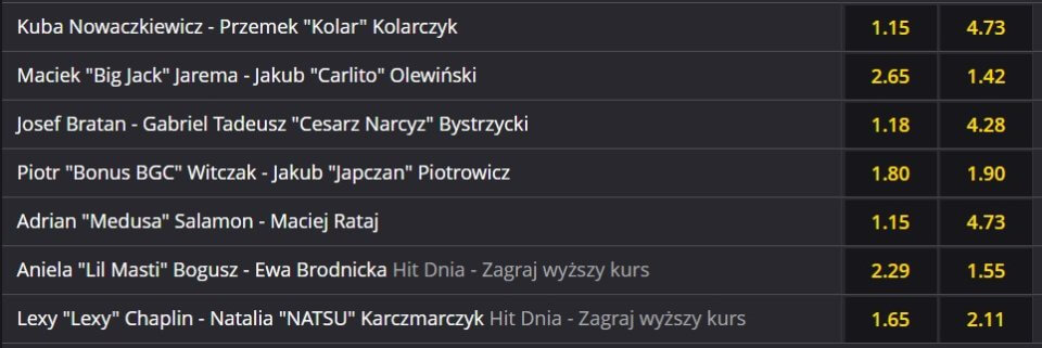 - Sponsorem federacji High League jest bukmacher Fortuna, który jako jedyny udostępnia zakłady na to wydarzenie.