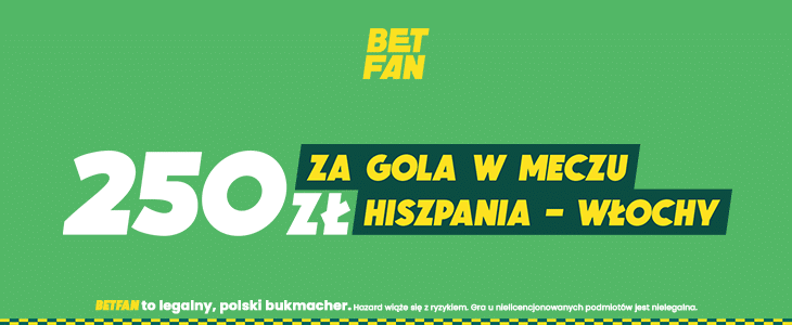 - Betfan oferuje freebet 250 zł za przynajmniej jednego gola w tym spotkaniu