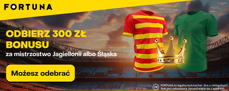 Bonus 300 zł od Fortuny za wytypowanie mistrzostwa Jagiellonii lub Śląska