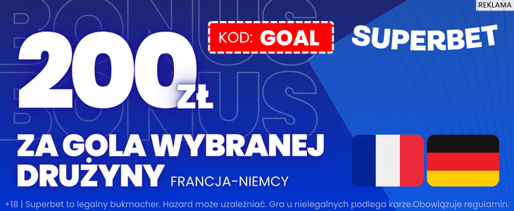 - W Superbet możesz zagrać kupon na gola Francji lub Niemców po kursie 100.00