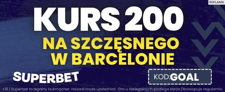 Według medialnych doniesień trwają intensywne rozmowy w tej sprawie i jest duże prawdopodobieństwo, że Szczęsny już wkrótce złoży podpis pod umową i dołączy do Roberta Lewandowskiego. Superbet przygotował z tej okazji świetną promocję. Rejestrując konto z kodem promocyjnym GOAL będziesz mógł postawić zakład na to, że Szczęsny podpisze kontrakt z Barceloną do końca września po bardzo wysokim kursie 200. Stawiając zaledwie 2 zł można zgarnąć bonus o wartości 400 zł. Jak skorzystać z tej oferty? Wyjaśniamy krok po kroku.