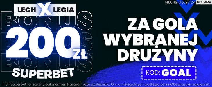 ![]() | Bonus 200 zł za gola Lecha lub Legii | GOAL | Odbierz |
