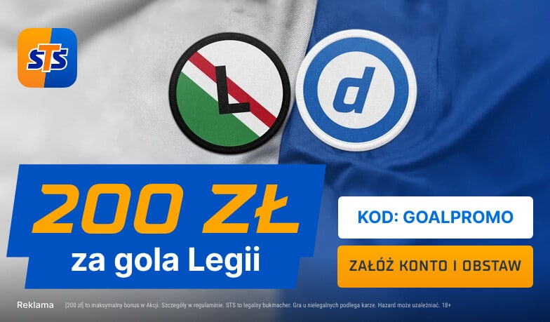 - Możesz postawić na gola Legii i odebrać 200 złotych bonusu od bukmachera STS