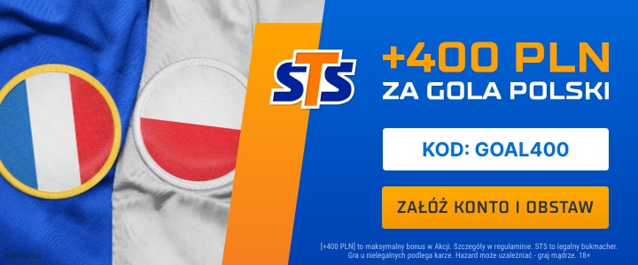 - Bukmacher STS oferuje bonus 400 zł za wytypowanie gola Polaków