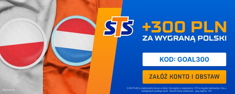 STS przygotował jedną z najciekawszych ofert na nadchodzące spotkanie. Rejestrując się w STS z kodem GOAL300, można otrzymać bonus 300 zł za wygraną reprezentacji Polski z Holandią.