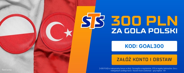 STS przygotował jedną z najciekawszych ofert na nadchodzące spotkanie. Rejestrując się w STS z kodem GOAL300, można otrzymać bonus 300 zł za wygraną reprezentacji Polski z Turcją.