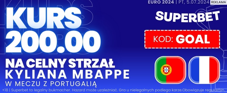 Starcie Portugalii z reprezentacją Francji to jeden z czterech niezwykle ciekawych pojedynków ćwierćfinałowych podczas trwających piłkarskich mistrzostw Europy. W ofercie firmy Superbet pojawiła się niezwykle interesująca promocja związana z tym spotkaniem. W jej ramach można zgarnąć aż 400 zł bonusu za celny strzał Kyliana Mbappe.