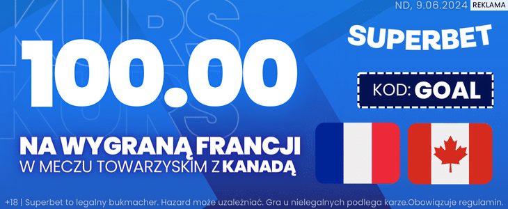 200 zł bonusu od Superbet za wygraną Francji z Kanadą
