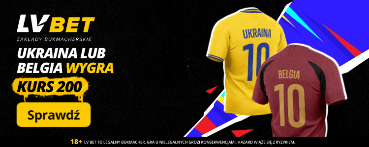 Kurs 200.00 od LV BET na zwycięstwo Ukrainy lub Belgii