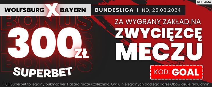 300 zł bonusu od Superbet za wygraną Wolfsburga lub Bayernu