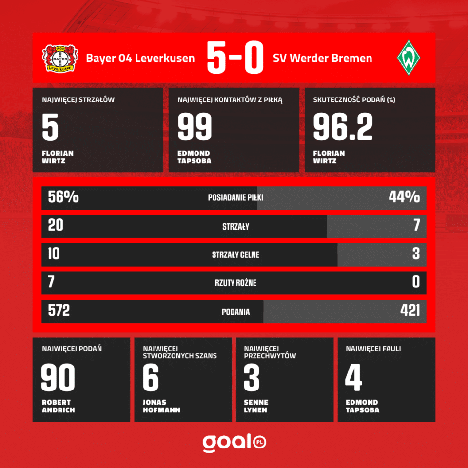 Florian Wirtz przyjął piłkę i obrócił się z nią w kierunku bramki. Niemiec zdecydował się na uderzenie, a piłka po wspaniałym strzale wpadła do bramki. Już nic nie zabierze Aptekarzom mistrzostwa kraju.
