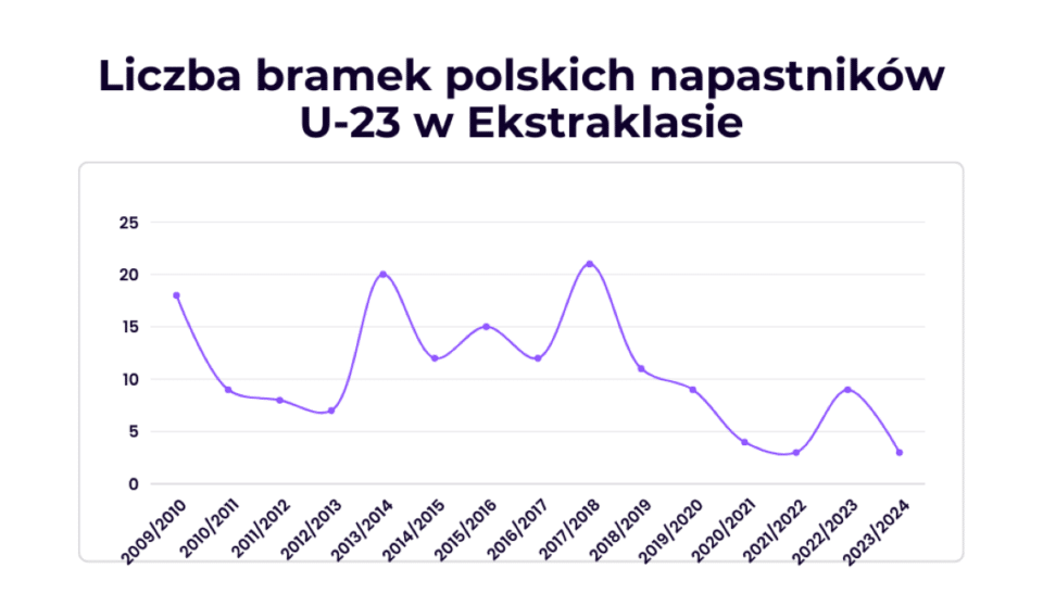- Od sezonu 2019/2020 żaden młody polski napastnik nie zdołał zdobyć 10 bramek w Ekstraklasie