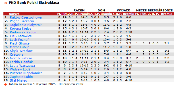 Po drugie – tendencja w punktowaniu obu ekip jest zdecydowanie na niekorzyść poznaniaków. Lechici punktują jak ligowy średniak w 2025 roku. Raków z kolei jak murowany kandydat do mistrzostwa. Jedni tracą, drudzy odrabiają i przeganiają dotychczasowego lidera. W Lechu dobrze to już było, w Rakowie dobrze jest właśnie teraz.