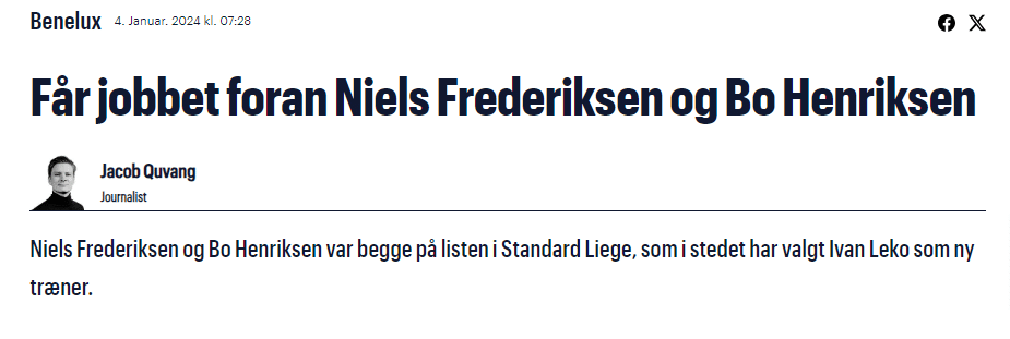 W styczniu tego roku z kolei pisano o tym, że 53-latek znalazł się na krótkiej liście życzeń Standardu Liege. – To nie geografia wyznacza granicę, więc jestem zainteresowany pracą również poza Danią – mówił Frederiksen w „Tipsbladet”, gdy łączono go z kolei z powrotem do Lyngby: – Krąży wiele plotek, część z nich jest prawdziwa, część nie. Starałem się o angaż w pewnych klubach, ale nie mogę powiedzieć o tym, jak blisko podpisania umowy było.