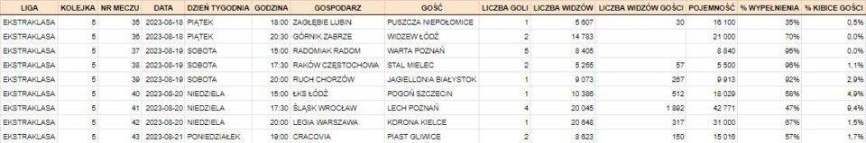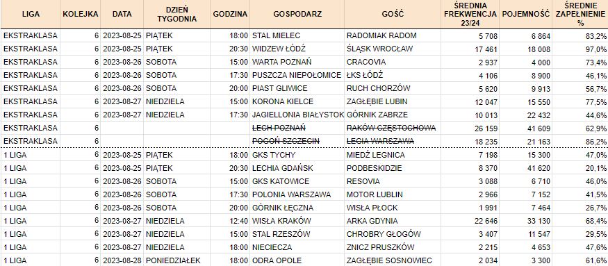 Frekwencja na polskich stadionach kontynuuje pozytywny trend wzrostowy. W pięciu pierwszych kolejkach było więcej widzów niż w poprzednich dwóch sezonach, a inauguracja stadionów w Radomiu i Płocku powinna jeszcze poprawić wyniki w obu najwyższych ligach. Bardzo dobrze wyglądamy liczbowo także w porównaniu do ligi czeskiej, jednak mówimy tutaj o kraju z czterokrotnie mniejszą populacją.