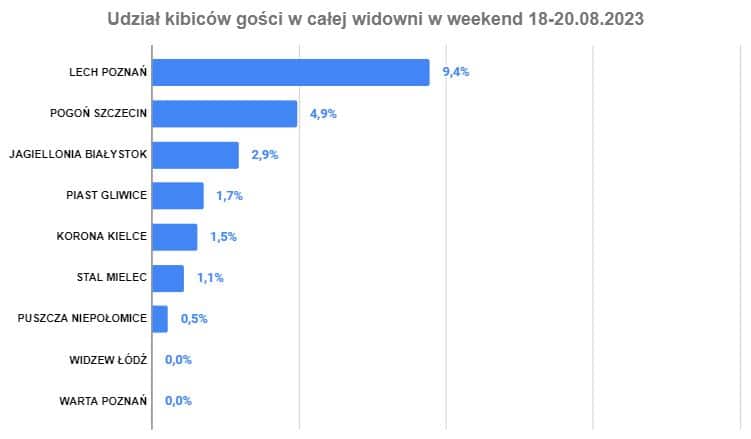 Procentowy udział kibiców gości w całej widowni
