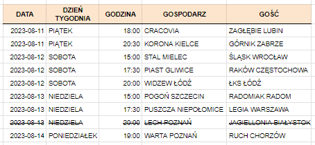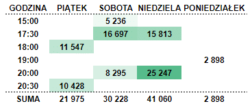 Najwięcej kibiców zgromadziły mecze niedzielne, czyli te w Lubinie i Warszawie. W sobotnim prime time’ie mieliśmy inaugurację stadionu w Radomiu, z widownią ograniczoną do 8 345 miejsc. Na obu piątkowych meczach było ponad 10 tys. widzów. Jak zwykle niewiele osób przyciągnął mecz poniedziałkowy, ale je to związane głównie z tym, że w tym terminie nie rozgrywa się tych najbardziej atrakcyjnych spotkań.