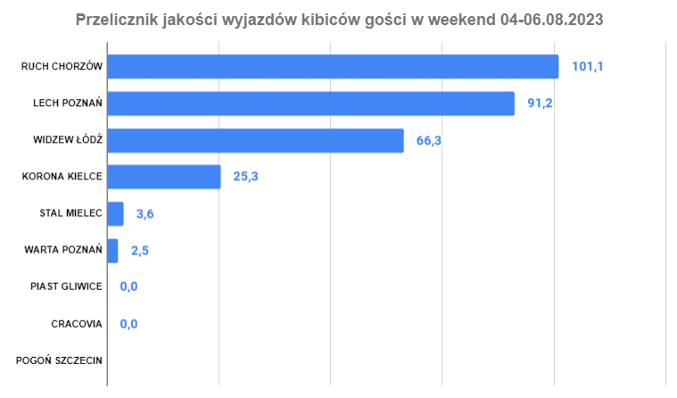 Chociaż to kibiców Lecha było najwięcej w tej kolejce i ogółem w sezonie, uwzględniając odległość wyprzedza ich Ruch Chorzów. Kibice tego klubu musieli pokonać ok. 600 km w obie strony, a kibice Kolejorza o połowę mniej. Mecz Górnika Zabrze z Piastem Gliwice to najbliższy wyjazd w lidze – ledwie 16 km w obie strony.