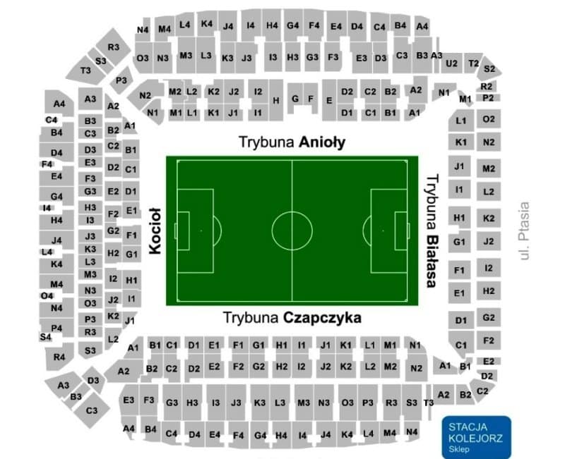 Cennik Lechii jest mało czytelny, ale po głębszym zastanowieniu i spojrzeniu na schemat możemy wyczytać, że sektory rodzinne są w narożniku boiska. Ich ceny są różne – 35 zł (górne rzędy) i 45 zł (dolne) za bilety normalne. Dziecko do lat 6. wchodzi bez opłat, ale nie zajmuje oddzielnego krzesełka.