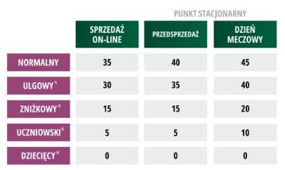Kupując bilety w dniu meczu stacjonarnie na dowolny mecz Zagłębia rodzina 2+1 zapłaci 105 zł, a online 85 zł. Hipotetyczna rodzina wybrałaby opcję online, płacąc przy tym o 20 zł mniej.