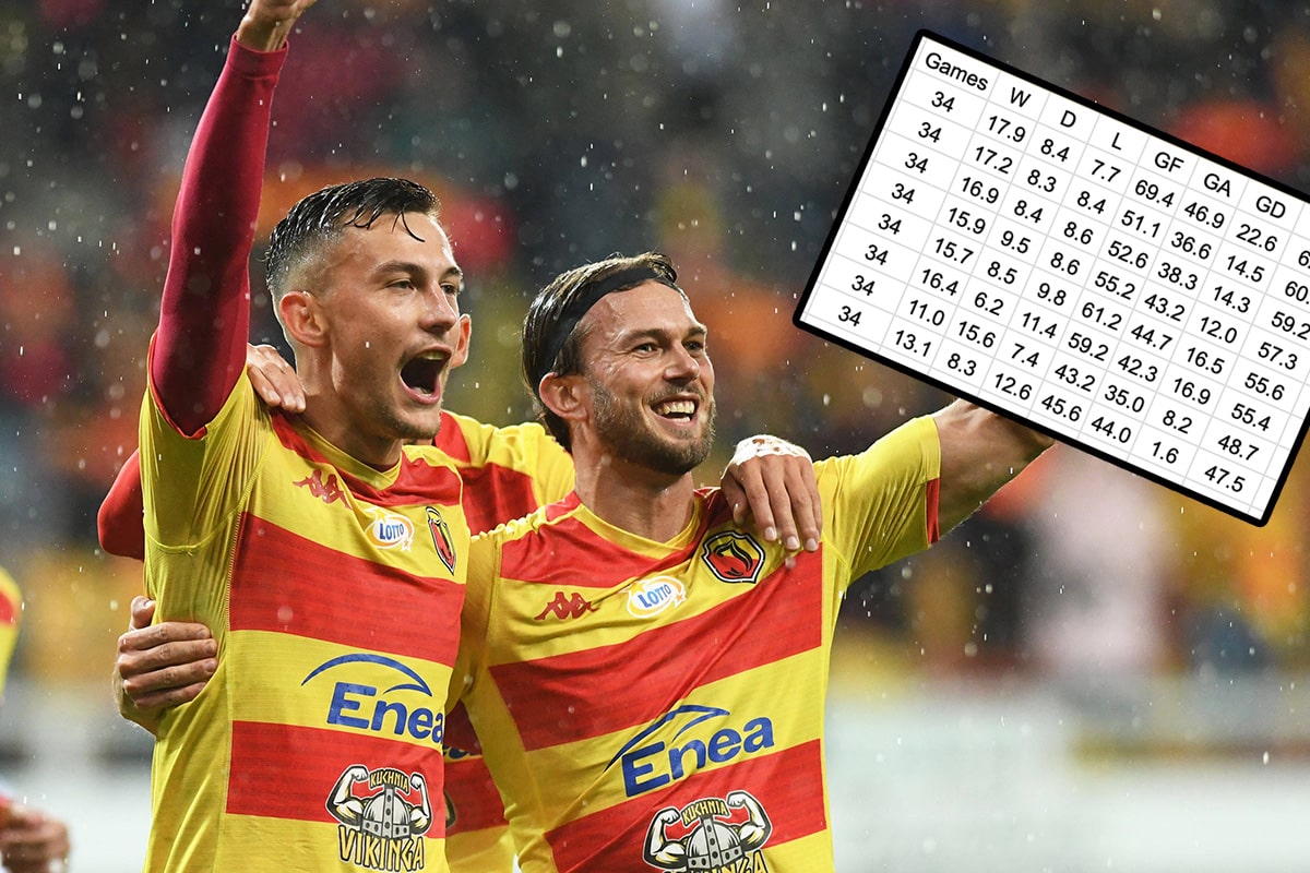 Przeprowadzona po ostatniej kolejce symulacja wskazuje, że za plecami Jagiellonii powinny uplasować się drużyny Śląska Wrocław, Legii Warszawa i Lecha Poznań. Broniący tytułu Raków Częstochowa miałby zakończyć rozgrywki na dopiero piątym miejscu.