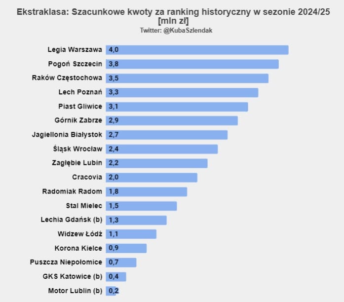 W tym miejscu mogę zacytować swój poprzedni tekst, w którym policzyłem, ile otrzymają kluby Ekstraklasy za sezon 2023/24.
