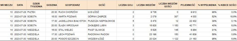 Początek sezonu Ekstraklasy to na pewno frekwencyjny sukces, a średnia w wysokości prawie 12 tysięcy widzów to dobry wynik. Pamiętajmy, że małe stadiony Rakowa, Warty i mecze Puszczy Niepołomice na stadionie Cracovii zaniżają możliwe do uzyskania liczby. Trzeba też dodać, że w weekend 11-13 sierpnia ruszy Premier League, La Liga i Ligue 1, a tydzień później Bundesliga i Serie A. Może to sprawić, że część kibiców zamiast wybrać się na stadion lub obejrzeć mecz Ekstraklasy, wybierze mecze z lig zagranicznych.