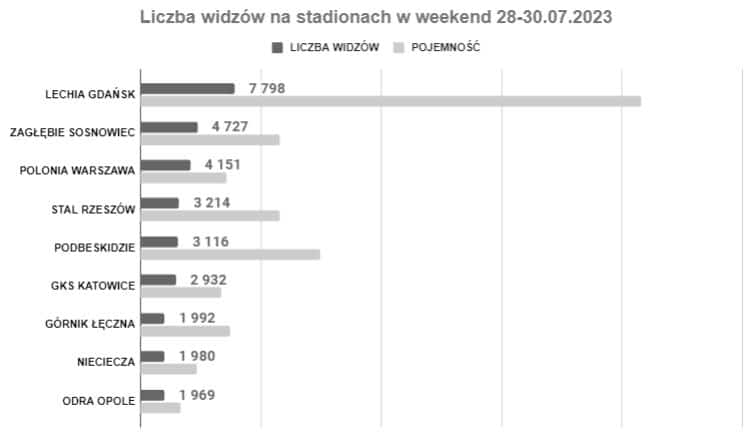 Nie mniej, warto wyróżnić kibiców z Gdańska, którzy uzyskali na pierwszym domowym spotkaniu drugą frekwencją w lidze w tym sezonie. Niecałe 8 tys. widzów to dobry wynik, czego oczywiście nie oddaje procentowe wypełnienie stadionu. Niezłą frekwencją mogą pochwalić się także władze Zagłębia Sosnowiec i Polonii Warszawa. Rozczarowaniem są na razie domowe mecze Podbeskidzie, na które przyszło łącznie niewiele ponad 7 tys. widzów.
