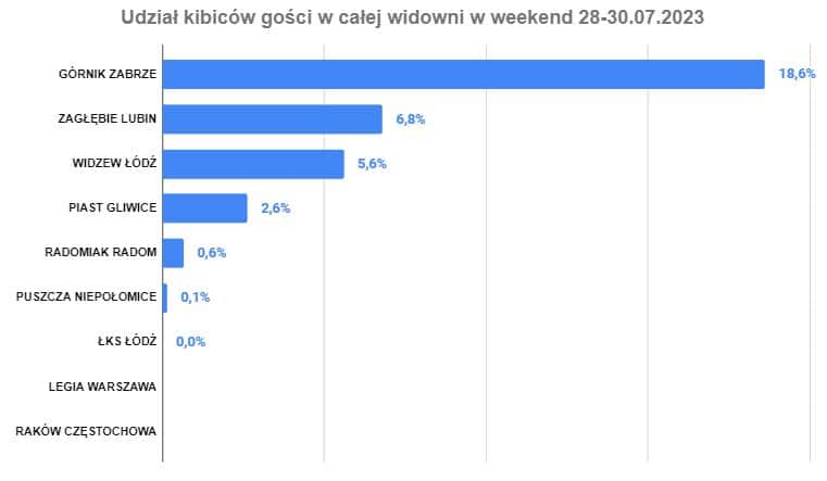 Ponad 15% widowni na stadionach stanowili kibice przyjezdni Górnika Zabrze w Grodzisku Wielkopolskim.