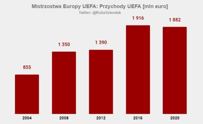 Podstawowe pytanie, które ktoś mógłby zadać brzmi: Skąd UEFA ma takie środki, żeby wypłacać miliony za sam awans? Odpowiedź jest prosta – głównie ze sprzedaży praw telewizyjnych. To podobny case, co w przypadku Ekstraklasy tylko na zupełnie innym poziomie. Euro 2020 przyniosło niemal 2 miliardy euro przychodów, podobnie jak turniej we Francji z 2016 roku. To wzrost o niemal 40% względem turnieju rozgrywanego w Polsce i na Ukrainie oraz ponad dwukrotnie więcej niż portugalski turniej z 2004 roku.