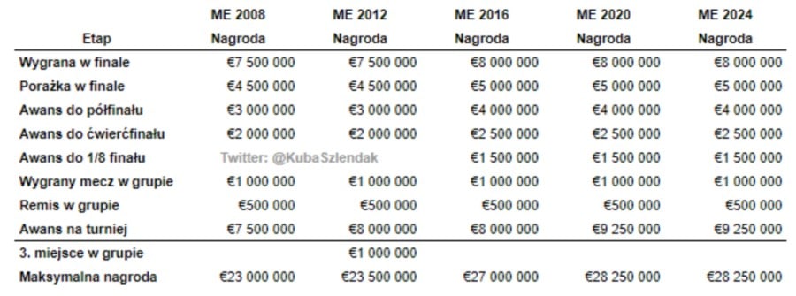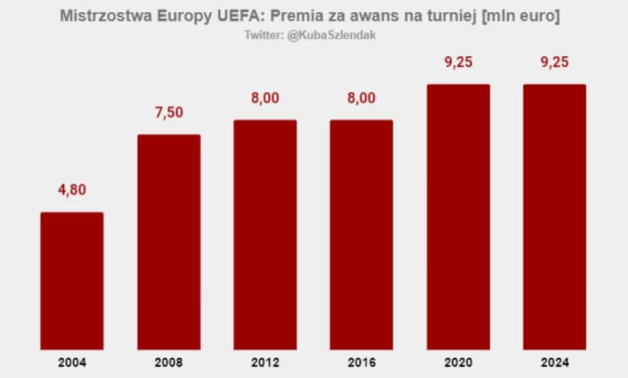 Za sam awans na turniej UEFA wypłaciła narodowym związkom po 9.25 mln euro, czyli równowartość 40 mln zł.